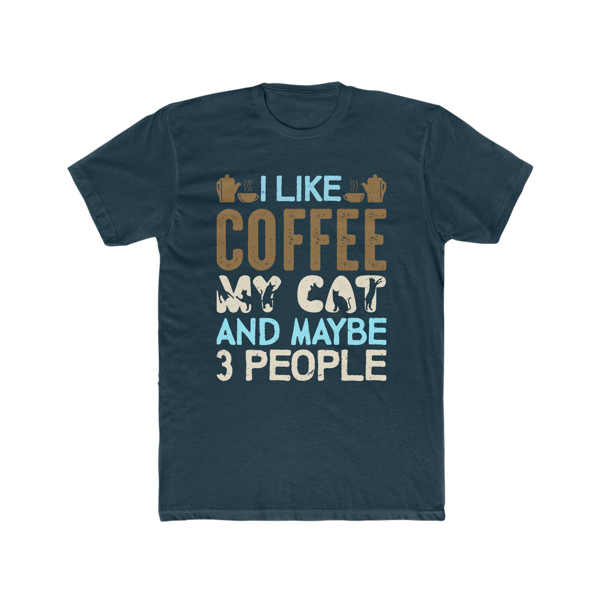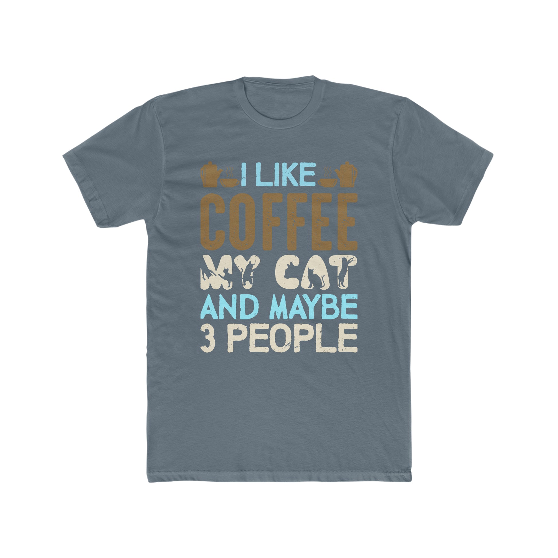 I Like Coffee, My Cat and Maybe 3 People - Men's Cotton Crew Tee